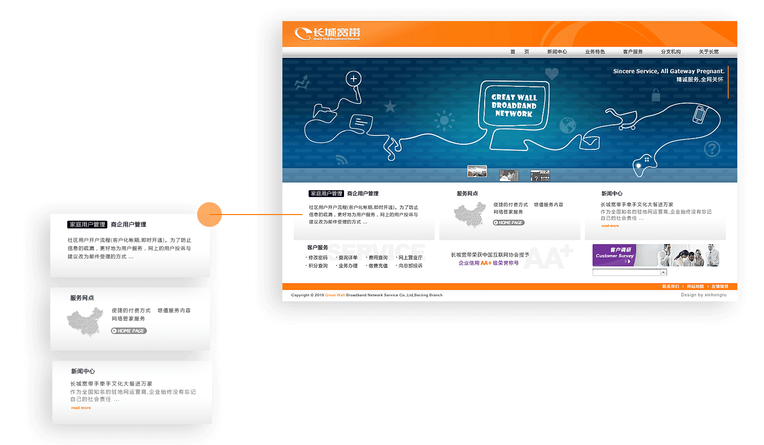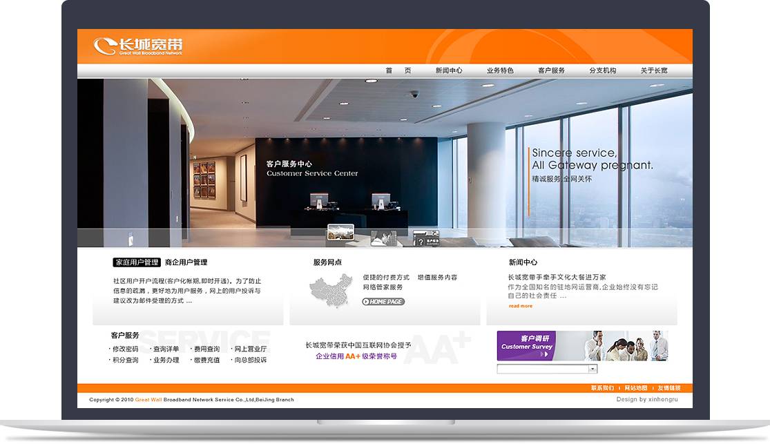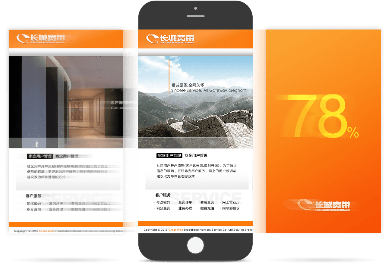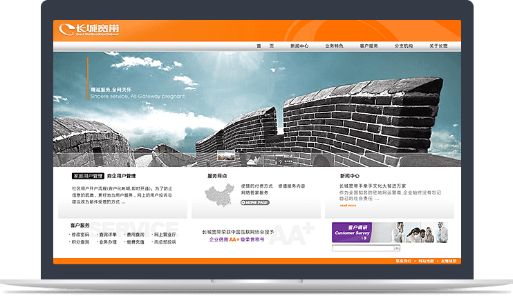 新鴻儒以用戶體驗為核心,為長城寬帶規(guī)劃,設(shè)計,開發(fā)品牌官網(wǎng),助力長城寬