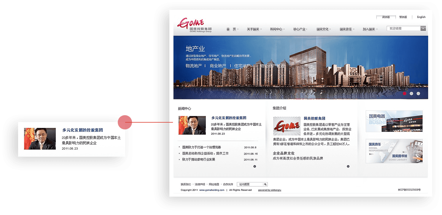 國美控股集團官網(wǎng)集展示、互動、營銷于一體,全面配合國美集團“用戶為王、產(chǎn)品為王、體驗為王