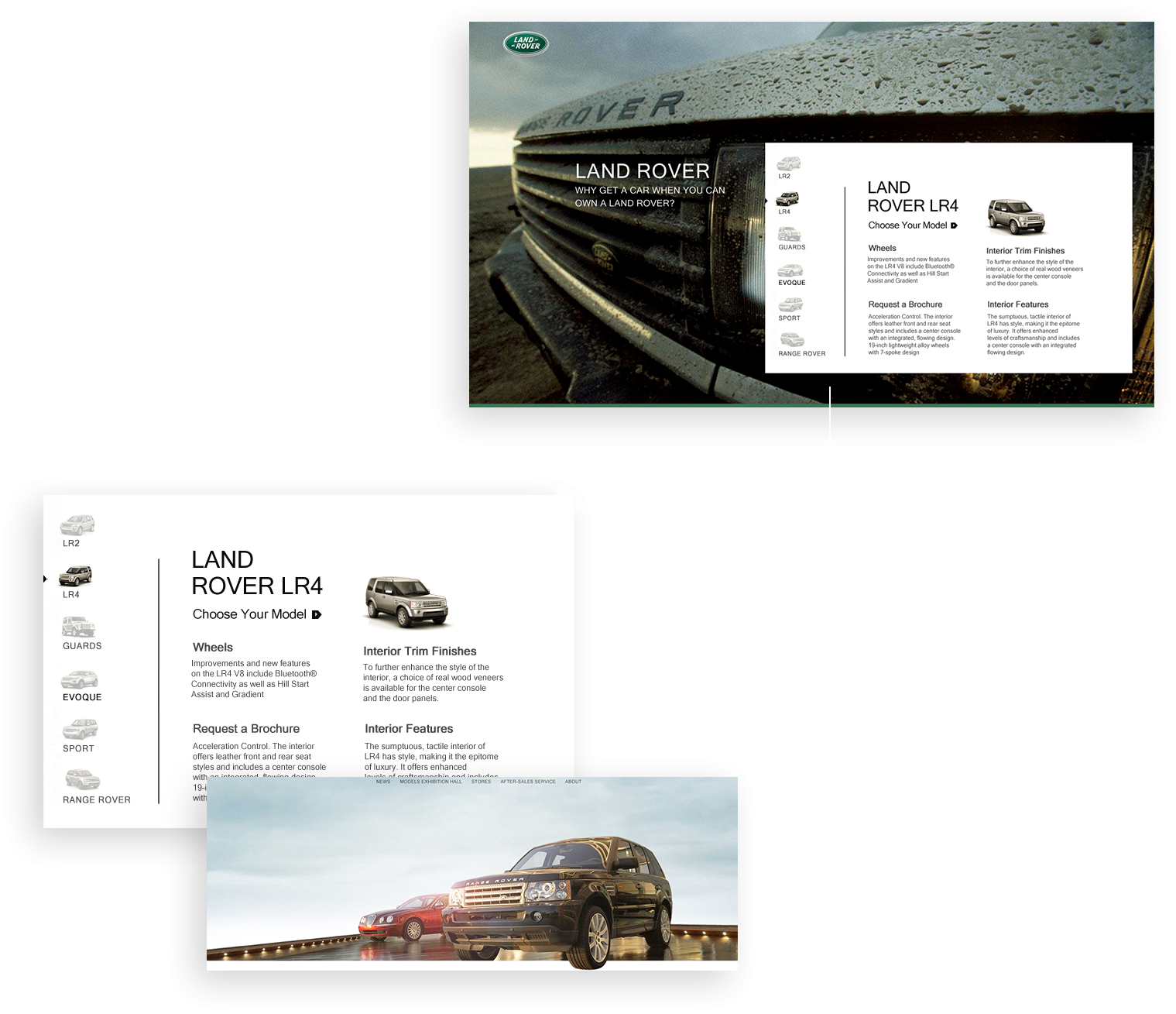 網(wǎng)站在進(jìn)行創(chuàng)意設(shè)計(jì)時(shí)著重表現(xiàn)路虎車的越野特性,高度契合路虎品牌及產(chǎn)品定位,傳遞路虎品牌內(nèi)涵。