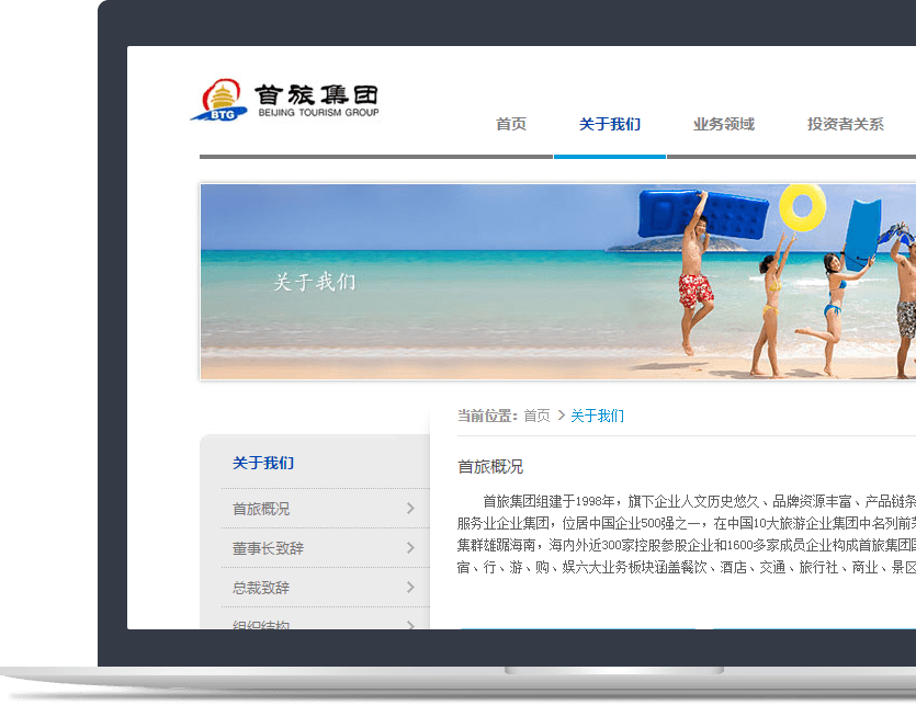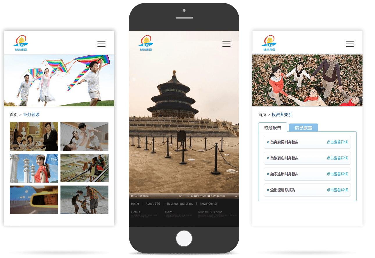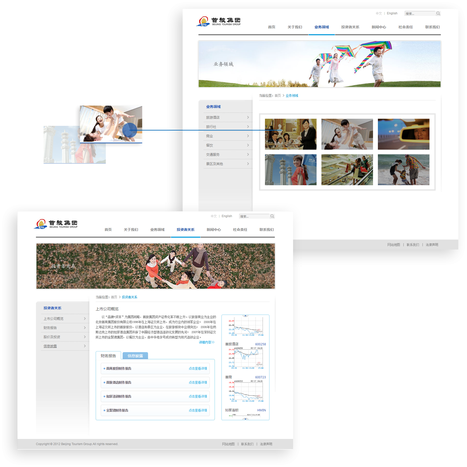 網(wǎng)站以“歷史與現(xiàn)代”相結(jié)合的視覺(jué)效果,表現(xiàn)首旅集團(tuán)作為知名的旅游服務(wù)企業(yè)的品牌形象。