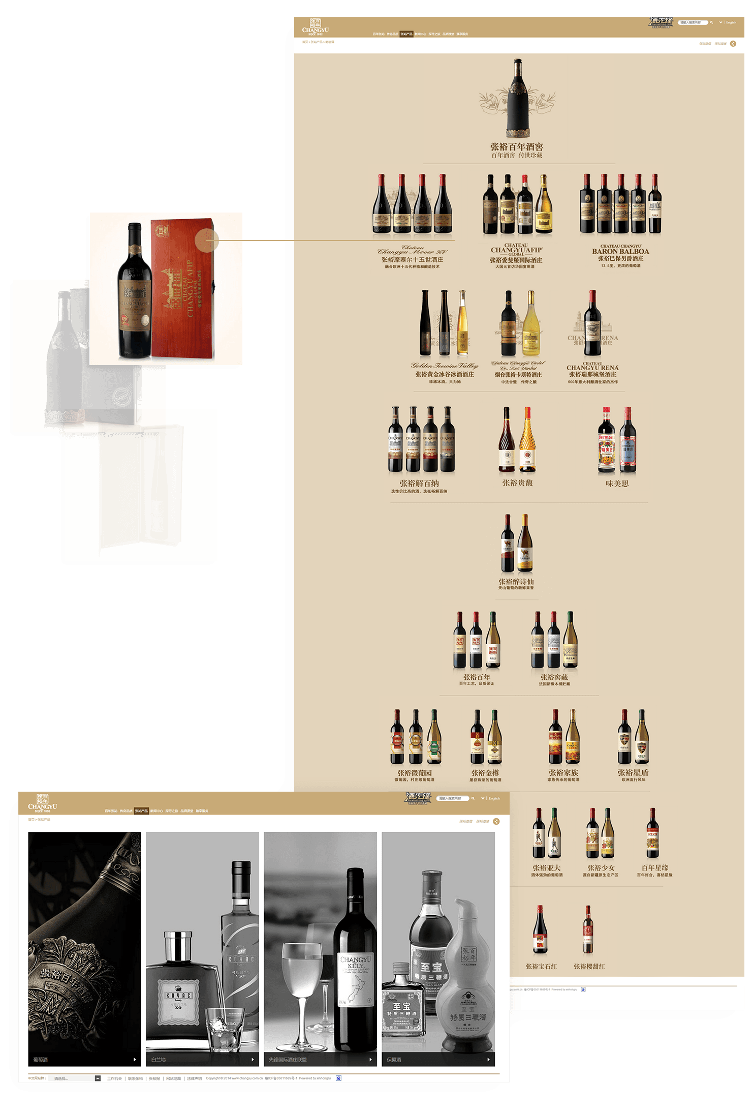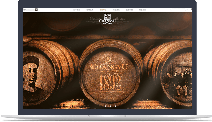 網(wǎng)站設(shè)計(jì)將傳統(tǒng)工藝感與現(xiàn)代科技感有機(jī)融合,氤氳著葡萄酒文化以及百年中國(guó)古典韻 味,彰顯百年張?jiān)5莫?dú)特品質(zhì)感。