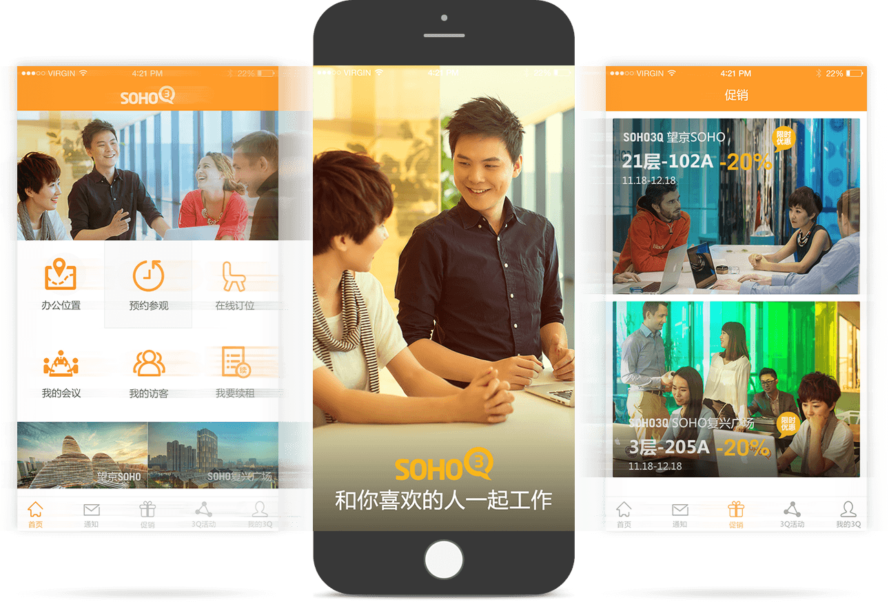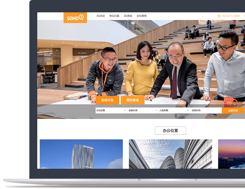 SOHO中國提供了一個現(xiàn)代化的共享辦公空間,并且面向短租、個性化租賃人群打造了自由、平等、多元的O2O電商服務(wù)平臺,不同行業(yè)、不同背景的人可以一起在線交流、碰撞、分享,用戶登錄官網(wǎng)即可完成自由選房、訂房、簽約、付款等完整的租賃流程。