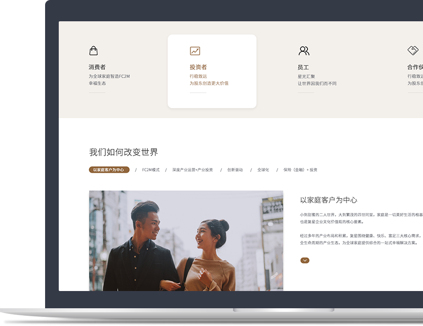 創(chuàng)立于1992年,復(fù)星深耕健康、快樂、富足、智造四大板塊,為全球家庭客戶 提供高品質(zhì)的產(chǎn)品和服務(wù)。