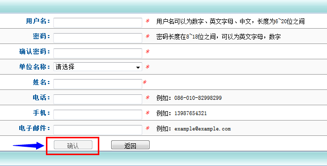2、按要求填寫正確信息后,點(diǎn)擊確認(rèn)按鈕。