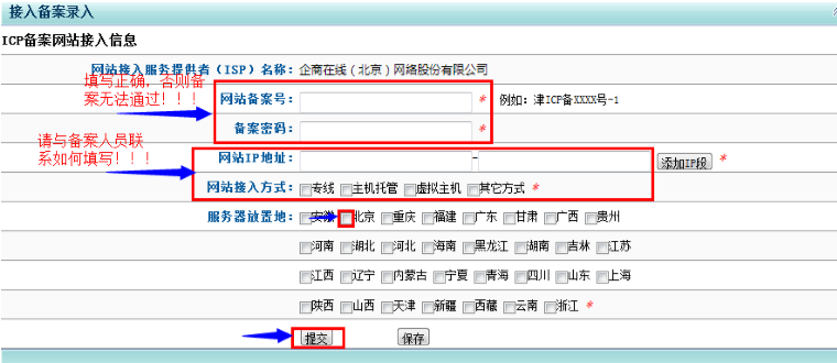 第四步:網(wǎng)上提交備案信息