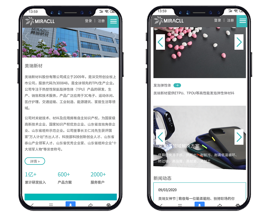 美瑞新材料對關(guān)鍵技術(shù)、材料及應(yīng)用擁有自主知識產(chǎn)權(quán),為國家級高新技術(shù)企業(yè)、國家知識產(chǎn)權(quán)優(yōu)勢企業(yè)、山東省準獨角獸企業(yè)、山東省瞪羚示范企業(yè)。公司始終堅持以客戶滿意和為客戶創(chuàng)造價值為導(dǎo)向,踐行專業(yè)、可靠、創(chuàng)新、合作、環(huán)保的經(jīng)營理念,為客戶提供高效、低成本的差異化產(chǎn)品解決方案,在向客戶提供高性能TPU產(chǎn)品的同時,也為其提供個性化、專業(yè)化的技術(shù)服務(wù),滿足其定制化需求。本次網(wǎng)站的全新搭建,使美瑞新材料在互聯(lián)網(wǎng)領(lǐng)域展現(xiàn)出全新的品牌形象。