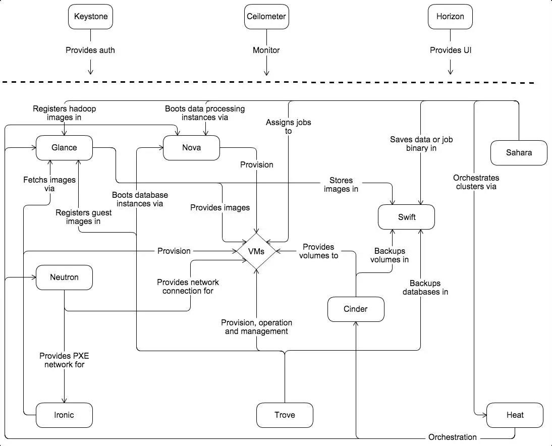 Openstack是IaaS層目前最活躍的一個開源的云計算 IaaS 平臺,即云操作系統(tǒng),類似于AWS(亞馬遜的云服務(wù)),通過各種開源組件實現(xiàn)了不同功能,目前大部分云管理平臺均基于Openstack實現(xiàn)計算、網(wǎng)絡(luò)、存儲的統(tǒng)一管理,Openstack支持如下功能組件: