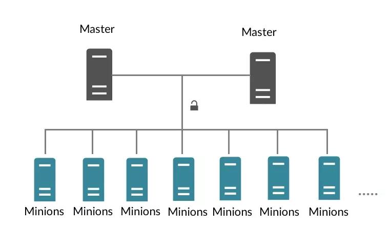 從部署結(jié)構(gòu)上看,SaltStack的在部署上可以分為master和minion兩個部分,其中master相當(dāng)于統(tǒng)領(lǐng)所有機(jī)器的總管,而minion則是部署在被管理機(jī)器上面的agent進(jìn)程,master通過網(wǎng)絡(luò)將配置管理相關(guān)的操作下發(fā)到minion,由minion在對應(yīng)機(jī)器的本地執(zhí)行。典型的部署例子如下圖所示: